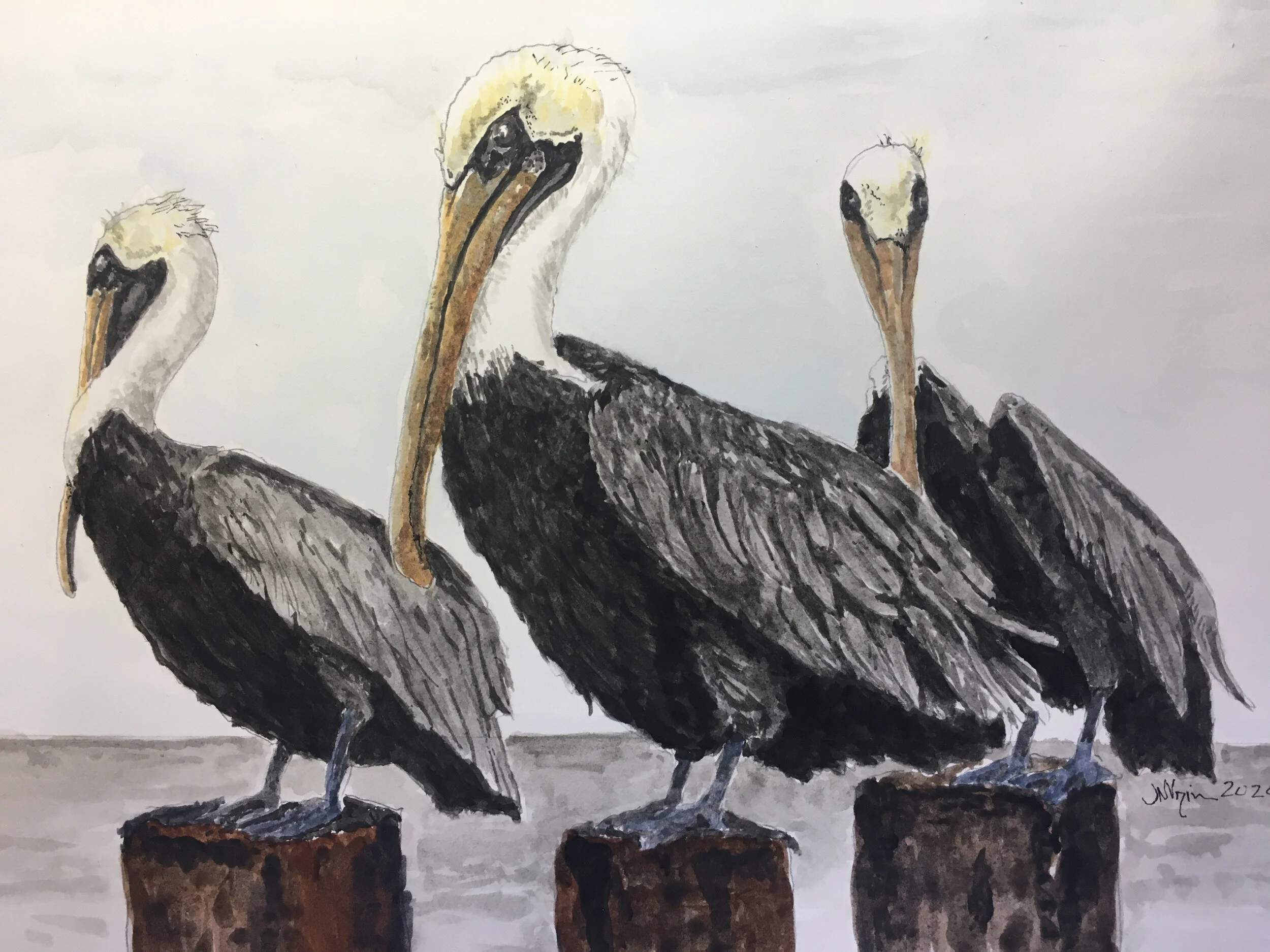 "3 Amigos" Pelicans Ft Pierce Florida Original only no prints; $575/SOLD