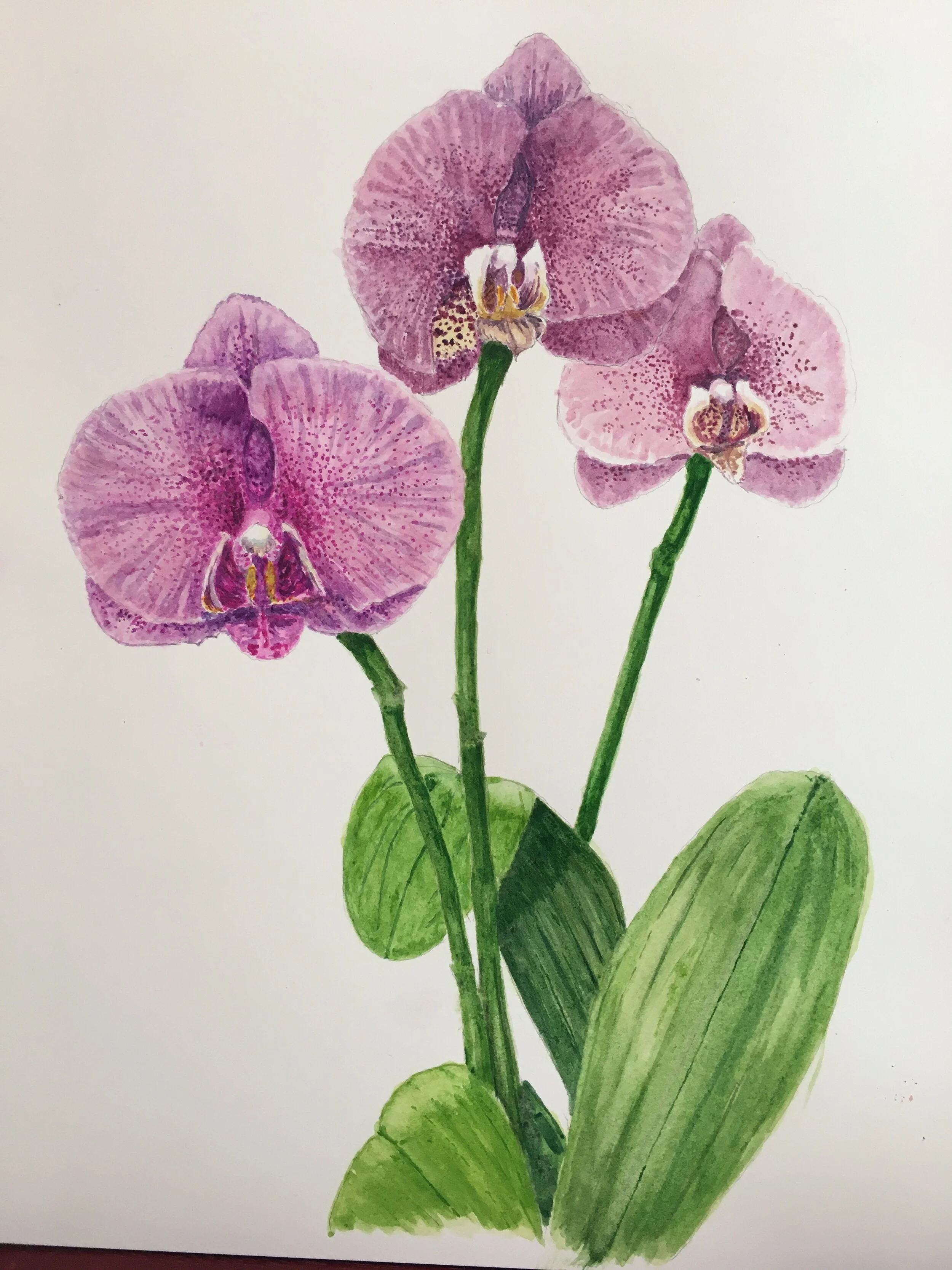 "Elegant Purple Orchard" On Arches Hot Pressed cotton 10"x14" Original only no prints $75