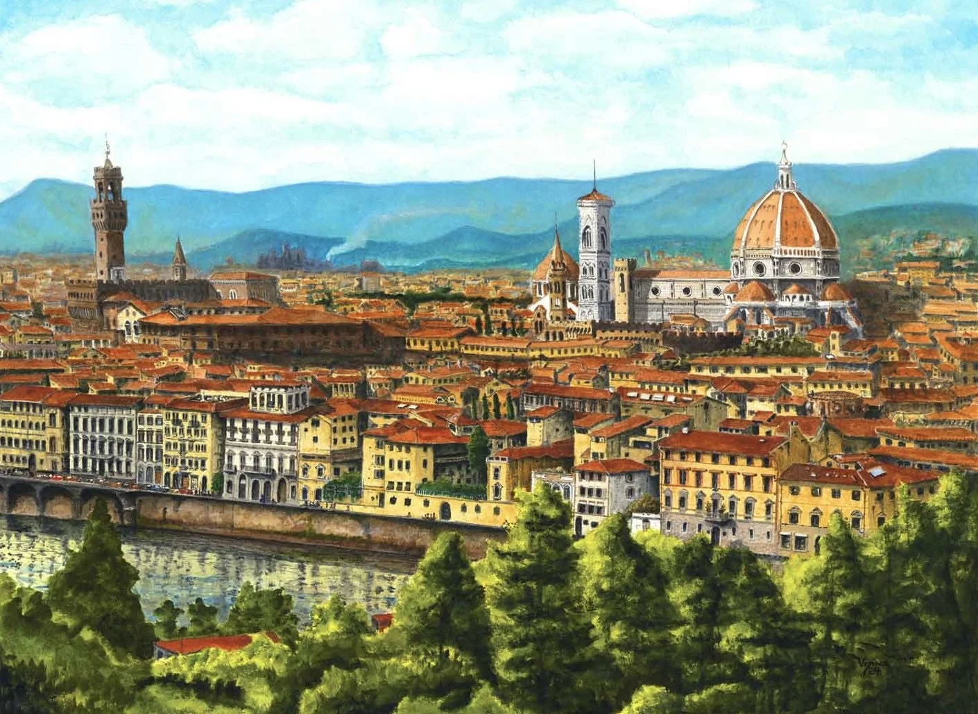 "Cathedral Santa Maria del Fiore" Florence Italy skyline,,,,,30"x22" 300lb Arches cotton paper. Original $3,500/Sold. Prints 1 -50 available on request