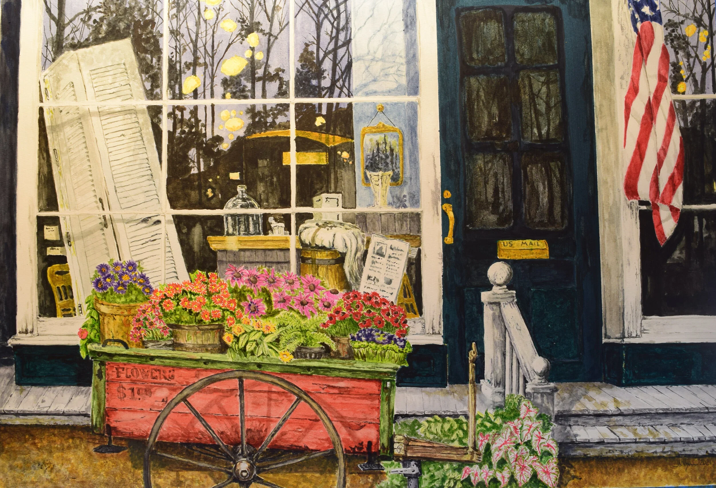 "Store Front & Reflections" On Arches 140# Cold Press cotton 16"x20" Original only no prints $475/SOLD