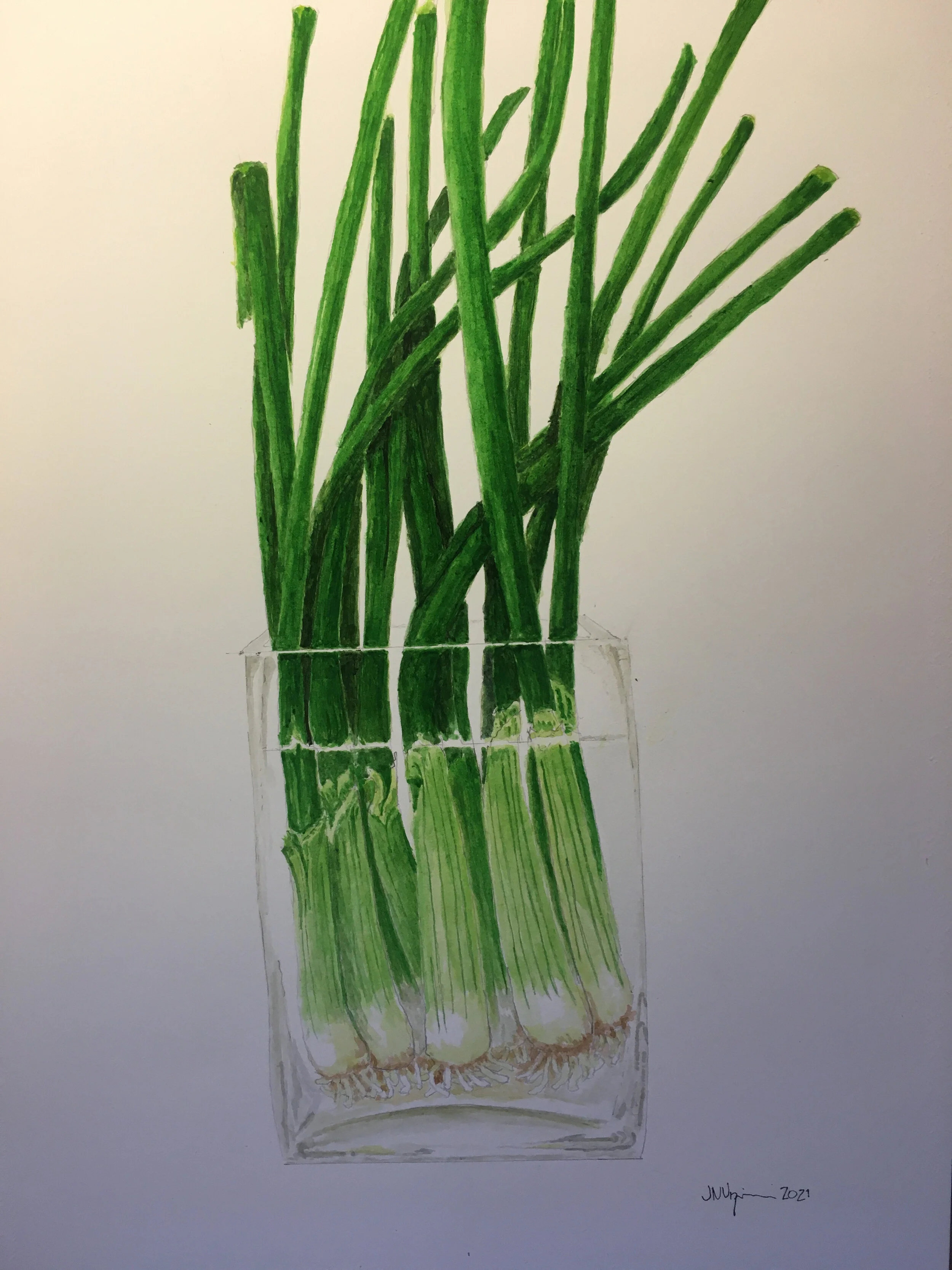 "Green Onions" in a Glass On Arches Hot Pressed cotton 10"x14" Original only no prints $125/SOLD