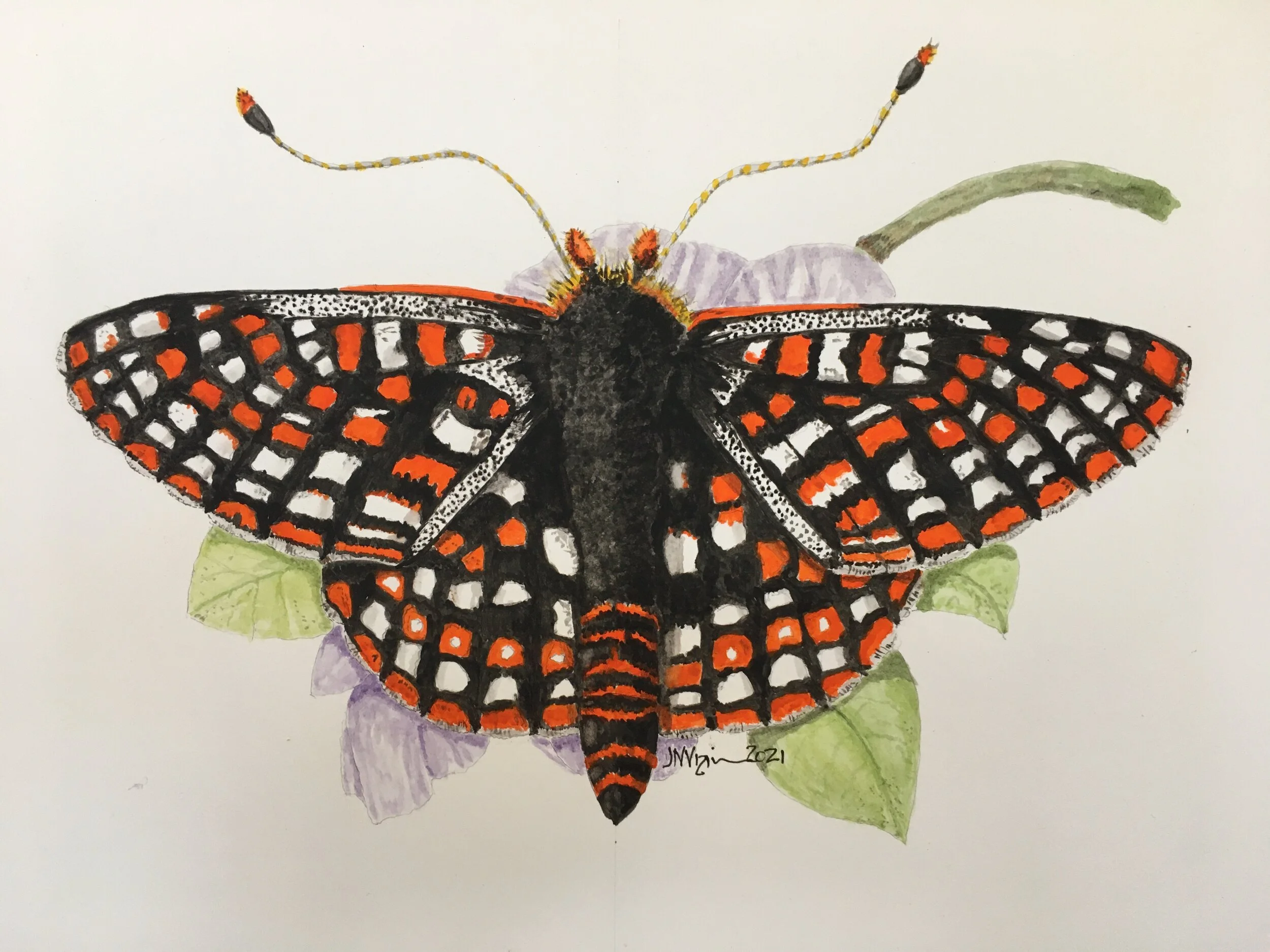 "Baltimore Checkerspot" On Arches Hot Press cotton 10"x14" Original only no prints $325