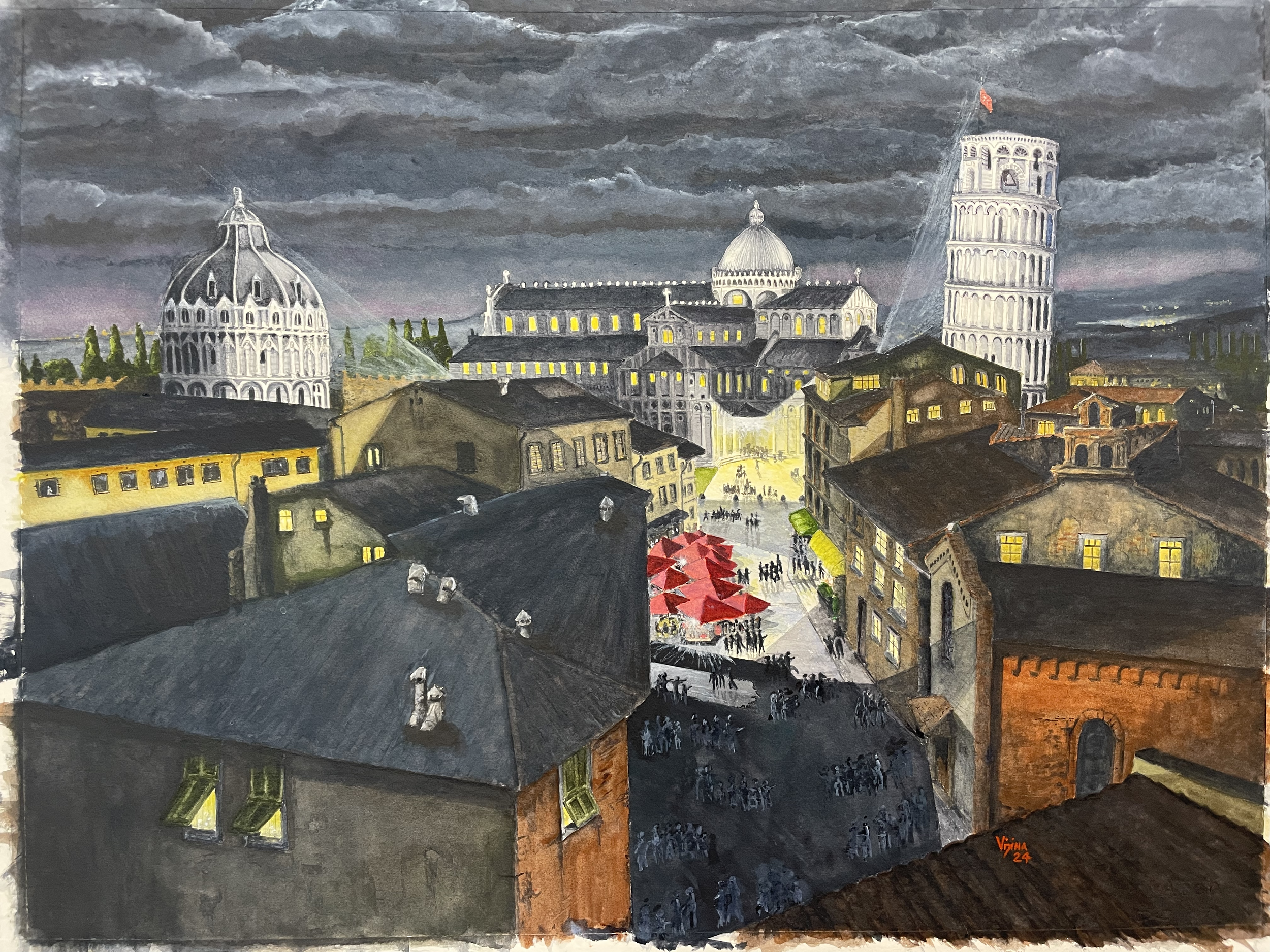 "Pisa - Lights" 30"x22" 300 lb Arches cotton paper. $1,500 . Prints 1 -50 available